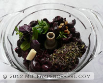 Minik taze otların zeytine kattığı nefis aroması herkese tavsiye ederim.Çok fazla taze otlar eklemek istemedim,kararınca olması gerek, zeytinin güzel kokusunu bastırmaması için,istenirse daha fazla taze yeşillik eklene bilir.