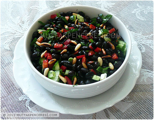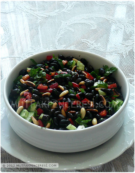 Bayram sofrasından siyah fasulye salatası tarifi. Fasulyenin poşetindeki tarife bir kaç eklemeler yaparak kendi damak tadımıza göre uyarladım.Sizlerde damak tadınıza göre eklemeler yapabilirsiniz, örneğin mısır eklenebilir, salatalık yerine kornişon turşu eklenebilir.Haşlanmış patatesle yapılabilir, küp doğranmış peynir ilave edilebilir,  benim aklıma gelen bunlar, gerisi sizelere  kalmış.