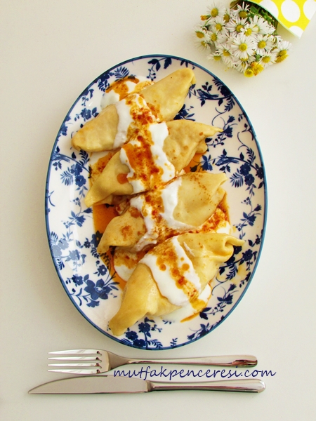 - Her açtığınız yufkayı pilava sarın kapatın,kaynayan suda yedi dakika haşlayın servis tabağına alın,üzerine sarımsaklı yoğurt dökün,kızdırılmış sade yağı gezdirin servis yapın.